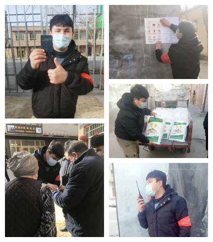 2018级市场营销班的阿不力米提·吐尔洪从学校返回新疆后,看到家乡南疆地区一些少数民族群众对这次疫情的认识依然不够到位,在个人防护方面有很多不足,存在很多安全隐患,作为一名返乡大学生他认为自己应该承担起一份责任,遂决定自愿加入社区疫情防控工作组,成为和田市加买路夏力克买里阔里拜西社区的一名志愿者。每天在社区内部积极宣传防疫工作的重要性,普及防疫基本知识,认真讲解政策法规,此外,他还主动承担起为隔离家庭和相关人员运送生活物资的工作。他始终坚信,在这场战役中,只要我们每个人都贡献自己的一份力量,大家勠力同心一定能够打赢这场疫情战役!