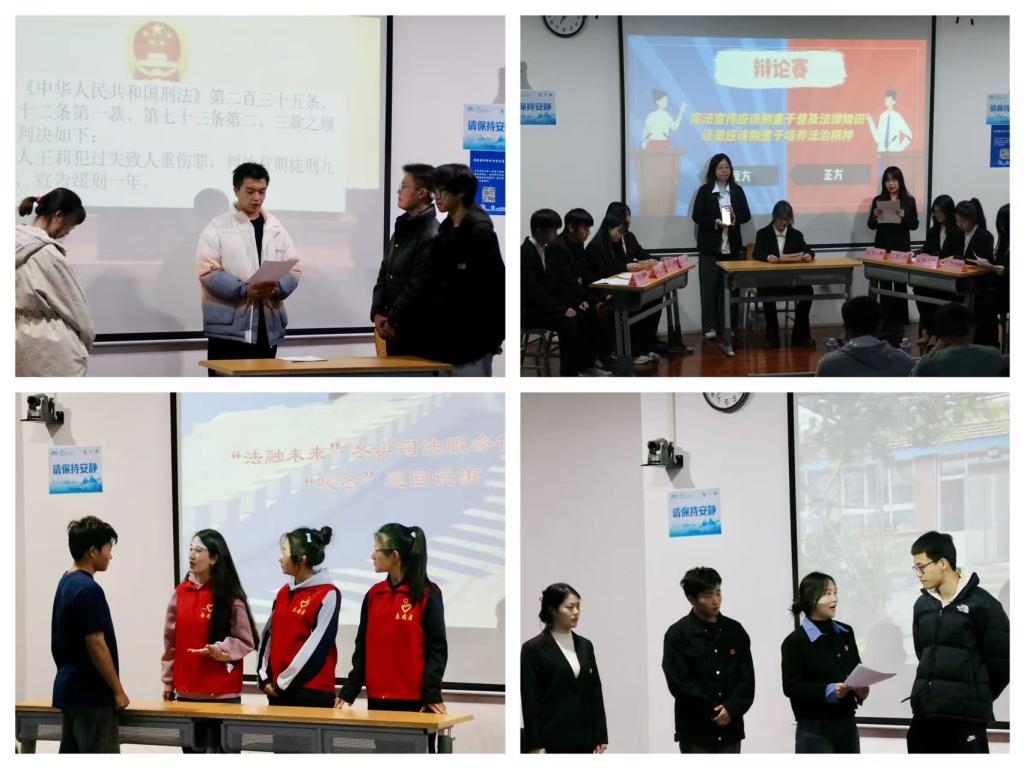 参赛作品各具特色,表演精彩纷呈,给现场观众留下了深刻印象。经过评委团的认真评选,最终评选结果揭晓:23级公管班的作品《沉默不是金》荣获一等奖;23级应用心理学班的《以法律之名》和22级市营班的《传承·绽放》共同获得二等奖;23级健管班的《破碎家庭的法律之路》、24级公管二班的《反诈小剧场》以及23级国营班的《普法风云》荣获三等奖。