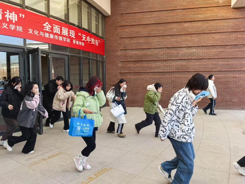 高潮部分,随着模拟火警信号的响起,火灾应急逃生演练拉开帷幕。师生们在保卫处工作人员的引导下,迅速响应,按照既定方案,冷静、有序地撤离至安全地带。演练过程中,学生们展现出的高度安全意识与团队协作精神,赢得了现场一致好评,有效检验了学院应急预案的实用性与师生应急反应能力。