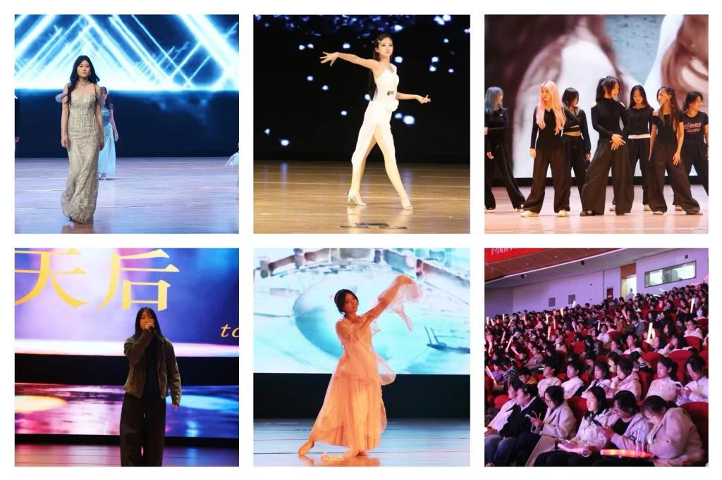 晚会在一段活力四射的走秀中拉开帷幕。模特们身着青春服饰,踩着铿锵鼓点迈步向前,自信的姿态与灵动的步伐瞬间点燃现场氛围,台下掌声与欢呼声此起彼伏。《dance shoot》的舞者们用利落动作与饱满热情,将青春活力直接拉满;随后是朗诵与舞蹈融合节目《流水桃花》,尽显东方雅致;精彩的独唱表演《天后》以抒情的旋律与深情的唱腔,让全场沉浸;《Dancing style》舞步展现灵动魅力,感染全场。