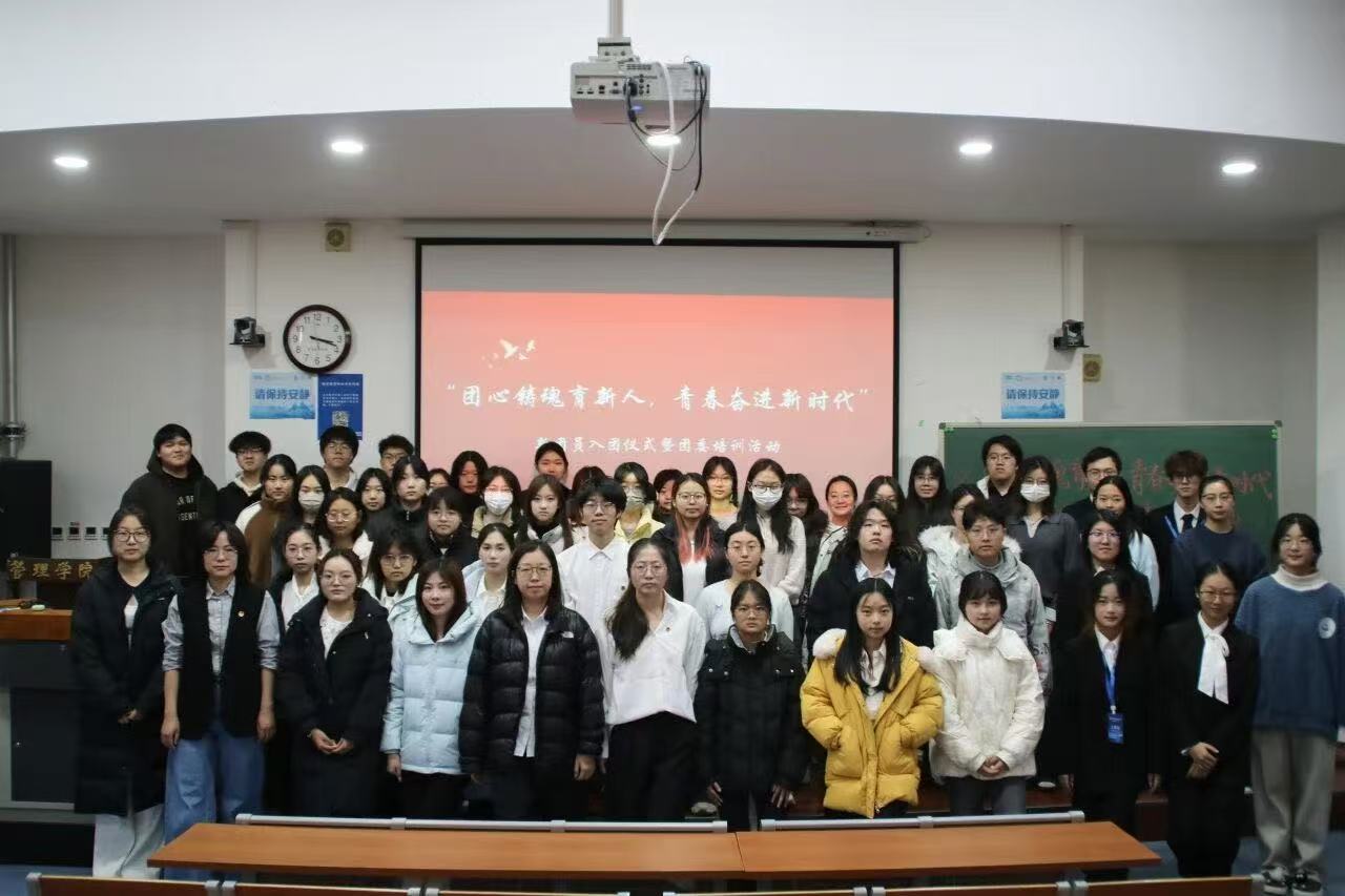 当青春遇上团旗,当誓言响彻心房,一场意义非凡的新团员入团仪式,为管理学院的青年力量注入了崭新活力。2025年12月9日下午,文华园102室内气氛庄重而热烈,“团心铸魂育新人,青春奋进新时代”主题入团仪式在此正式拉开帷幕,管理学院于安强老师、李婷婷老师、各支部团干部及团员代表齐聚一堂,共同见证新团员的光荣时刻。