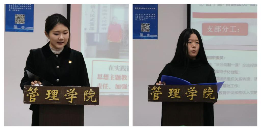 优秀团支书金秀颖同学、焦凤格同学则分享了团干部工作经验,从团日活动策划、活动组织等实际工作出发,围绕团员管理、活动策划等内容分享宝贵经验,给新团员和团干部提供了实用的工作思路与方法,为新团员们提供了实用的指导与借鉴。