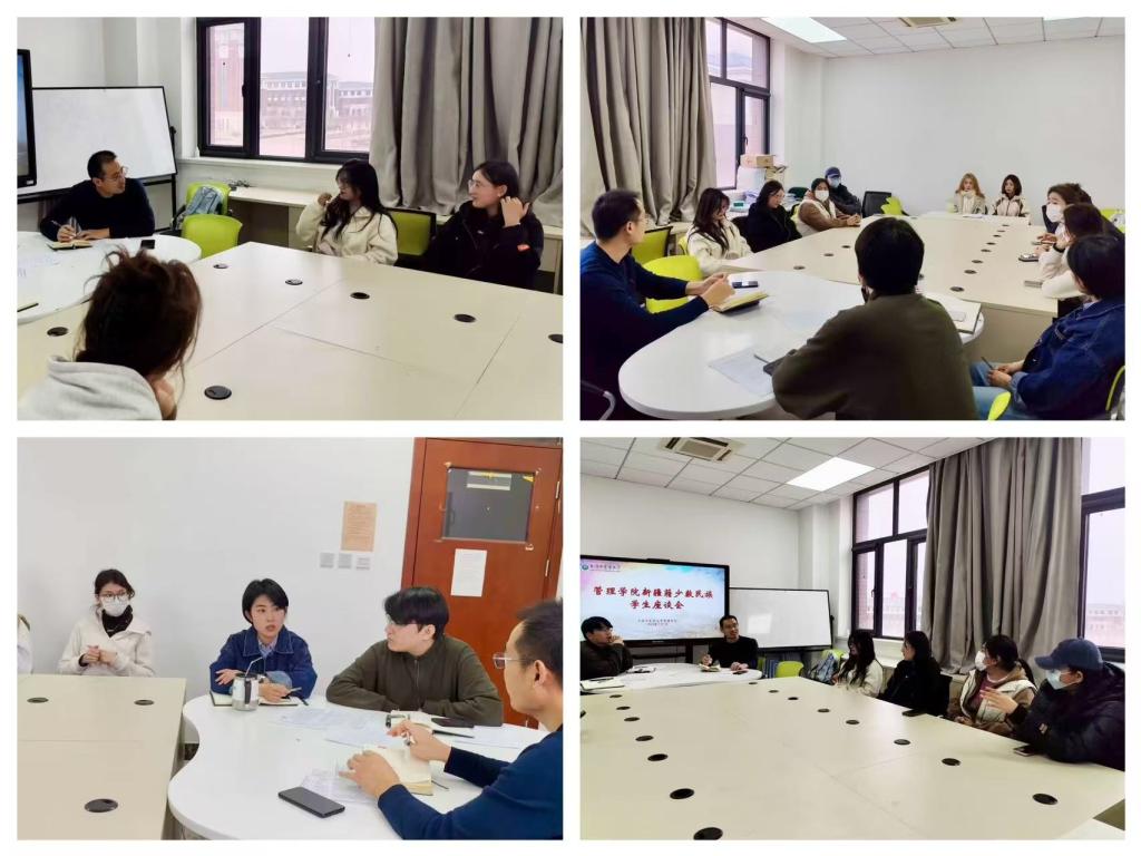 为进一步推进我院民族团结教育工作,促进少数民族学生文化交流,更好地了解新疆籍少数民族学生的假期生活情况和思想动态,管理学院于2025年3月7日下午在文华园B312管科中心召开了新疆籍少数民族学生座谈会,管理学院党委副书记盛世兴老师、2022级辅导员张悦老师、2023级辅导员那吉达提·热甫克提老师以及管理学院各年级新疆籍少数民族学生参加了本次会议。