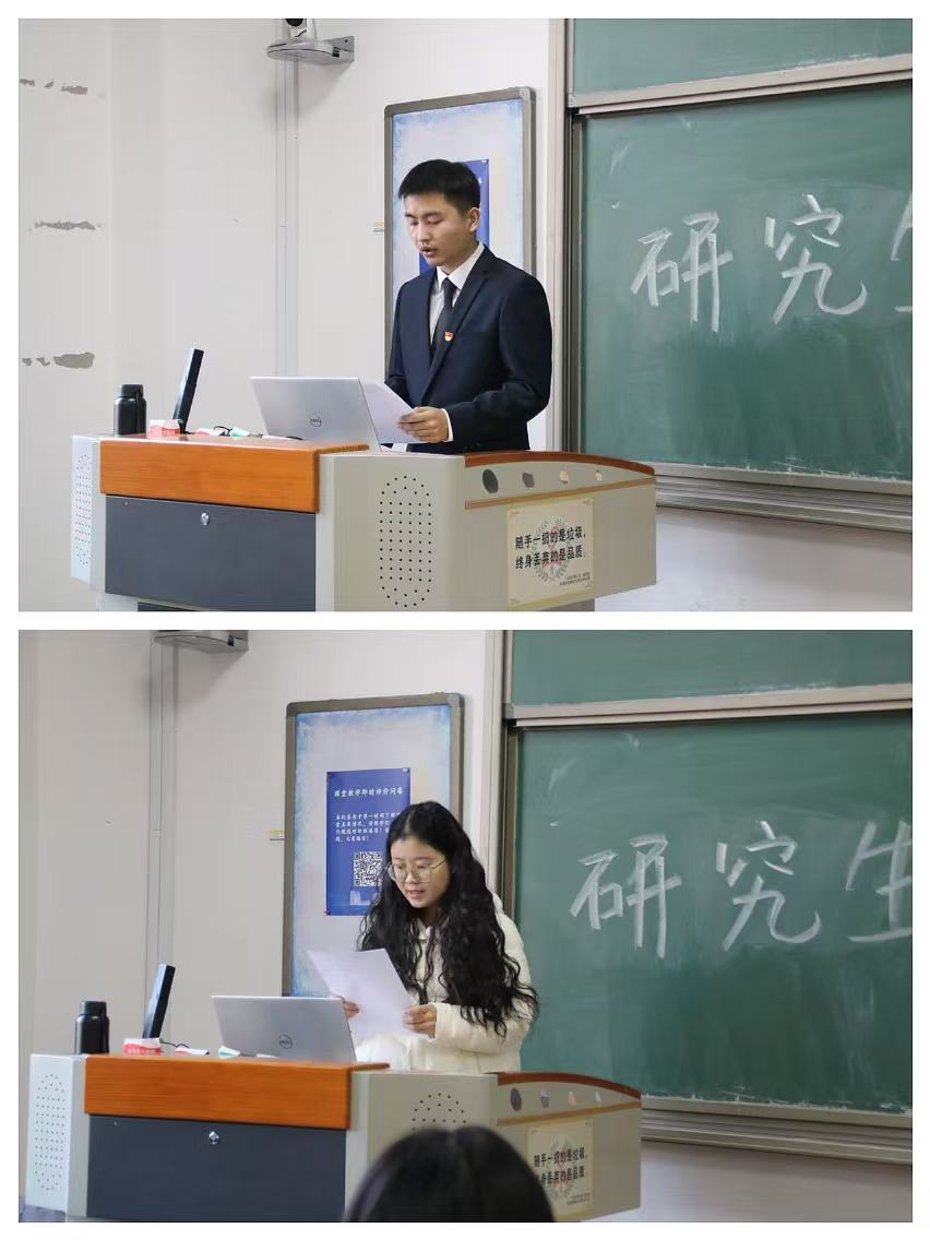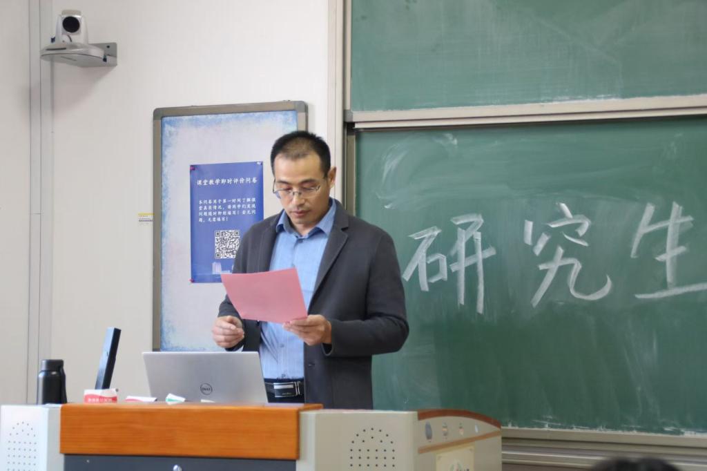 大会在庄严而热烈的氛围中拉开序幕。首先,党委副书记盛世兴老师发表致辞。盛老师对管理学院研究生在学术研究创新、学术素养提升等方面的突出表现给予了高度肯定,并向同学们表达了诚挚的问候。同时,盛老师对研究生同学们提出了五点期望:加强团结协作、注重社会实践、积极参与志愿活动、坚持言行一致,并鼓励大家继续努力,争取在未来的学术研究中创造更大的成绩。